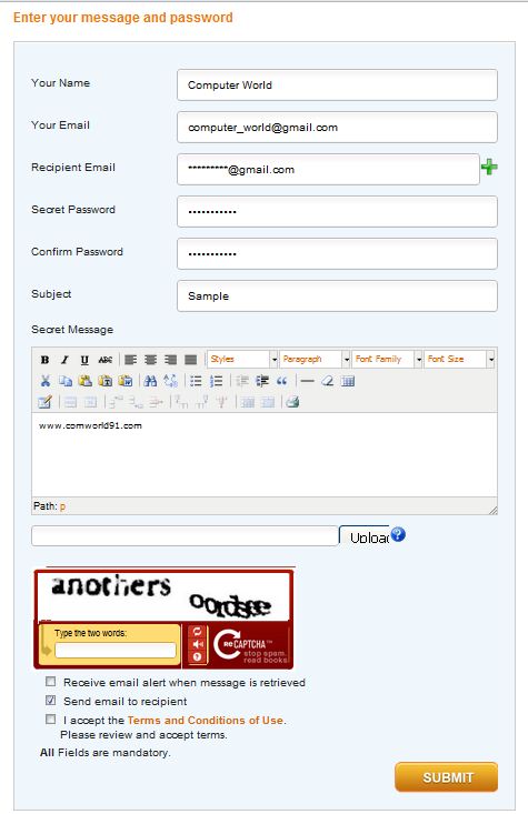 Now password protected mail will be sent to the particular person, only the particular person will get the link to read your password protected mail.